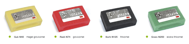 Diapad Slibeklodser som er ergonomiske og farvekodede efter slibestyrke.