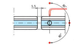 Dette hængsel kan åbnes 180 grader og er regulérbart, dvs. at det kan reguleres i forhold til installationen. F. eks. kan samme hængsel bruges til at lave en brusedør med 90 eller 135 graders vinkel.