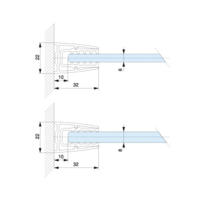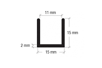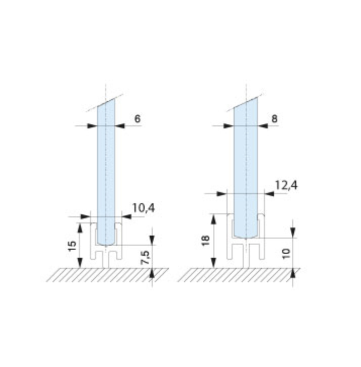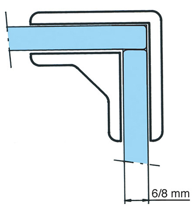 vælger man sort u skinne til 6 mm glas er dimensionerne på skinnerne de samme som til 8 mm glas.