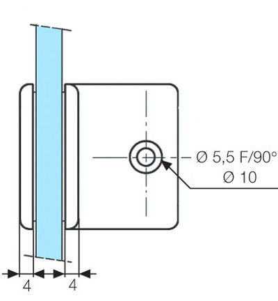 Dette beslag kan kun bruges til 6mm tykt hærdet glas. Det installeres ovenpå glasset og drejes så det passer i flere forskellige vinkler