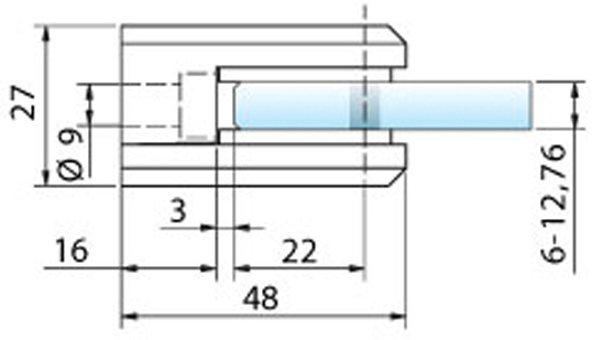 Dette beslag er designet til 8 -12 mm glas og bruges sammen med en brusestang på 19mm i diameter.