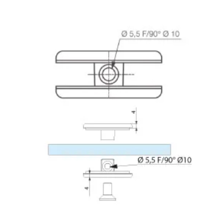 Dette beslag kan bruges til 10-12mm tykt glas og er designet til at bruges i gulv-til-luft installationer.