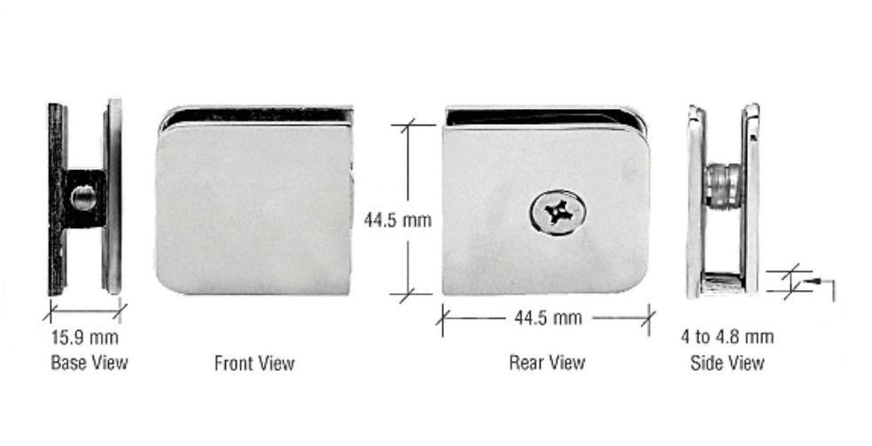 Vores firkantede støttestang komplementerer mange CRL-hængsler i kvadratisk hjørnestil. Baren stabiliserer faste paneler af glas i indhegninger, der ikke går til loftet. Efter bestilling af selve baren, vælg mellem en række forskellige fittings for at fuldføre den ønskede applikation. Fittings leveres med nylon-spidse sætskruer, der fastgør glasset og forhindrer metal-til-metal kontakt. Der kræves ingen huller eller udskæringer i glasset.