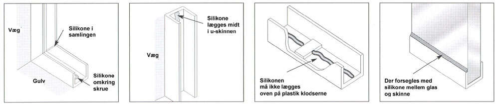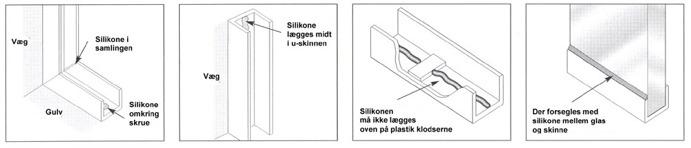 1 stk. pose med klare klodser til at lægge under glasset i u-skinnen og til at klemme glasset fast i skinnens sider.