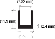 vælger man sort u skinne til 6 mm glas er dimensionerne på skinnerne de samme som til 8 mm glas.