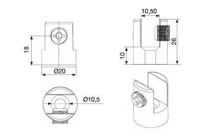 Funktioner: justering for at holde glasset på plads ved hjælp af to Ø8-skruer med PVC