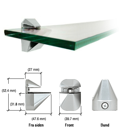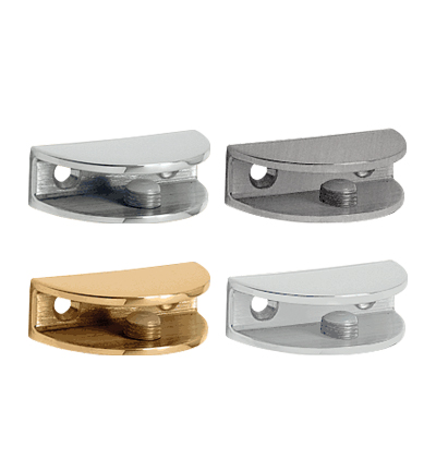Denne glashyldebærer er lavet til 6 og 10 mm glastykkelse og er lavet i solid messing som er blank forkromet, matteret eller har overflade som rustfri.