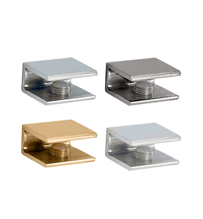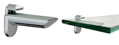 Disse hyldebeslag i aluminium kan monteres horisontalt efter ønske. Passer til glas- eller træhylder mellem 10-12 mm. Beslagene kan holde op til 36 kg.