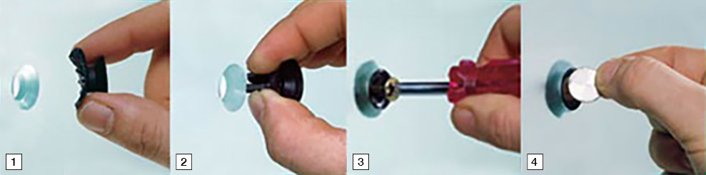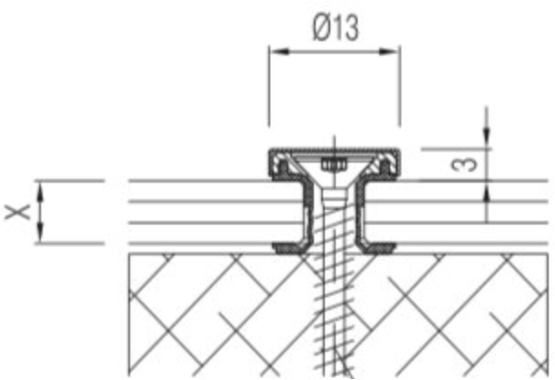 4 stk. specielt forsænkede huller i glasset eller spejlet.